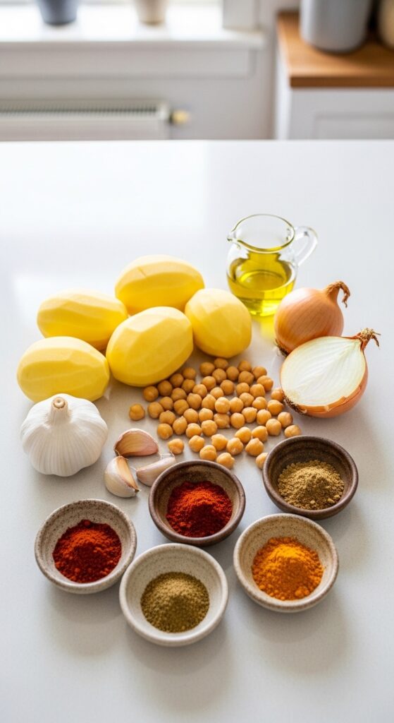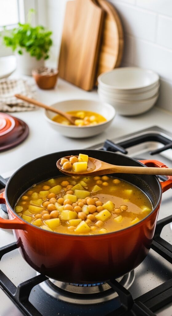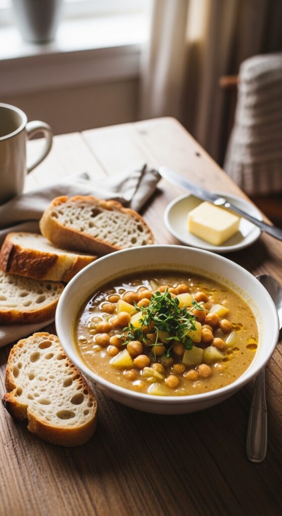Potatoes naturally thicken the broth while chickpeas add a satisfying bite. You don’t need cream or complicated techniques. The ingredients quietly do all the heavy lifting.
