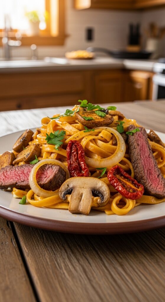 - Textured: Tender pasta + juicy steak + optional add-ins = a layered bite every time.