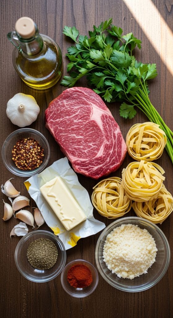 Before we get to tossing steaks and stirring creamy sauces like pros, here’s your shopping list. FYI, everything is super accessible, no exotic ingredients needed.
