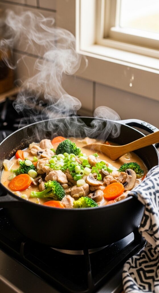 Bring it to a gentle boil, then reduce the heat and simmer for 25–35 minutes, until vegetables are tender and the protein is cooked through. Don’t rush this step patience pays in flavor.